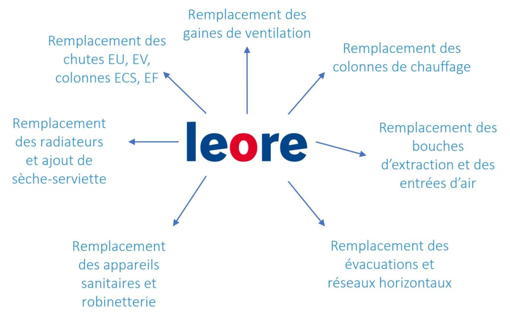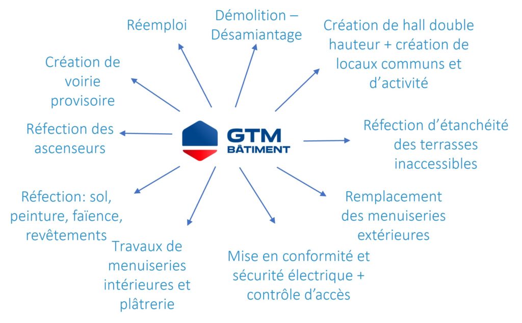 Le projet est géré par GTM BATIMENT (TCE), LEORE PLOMBERIE et LEORE FACADE,