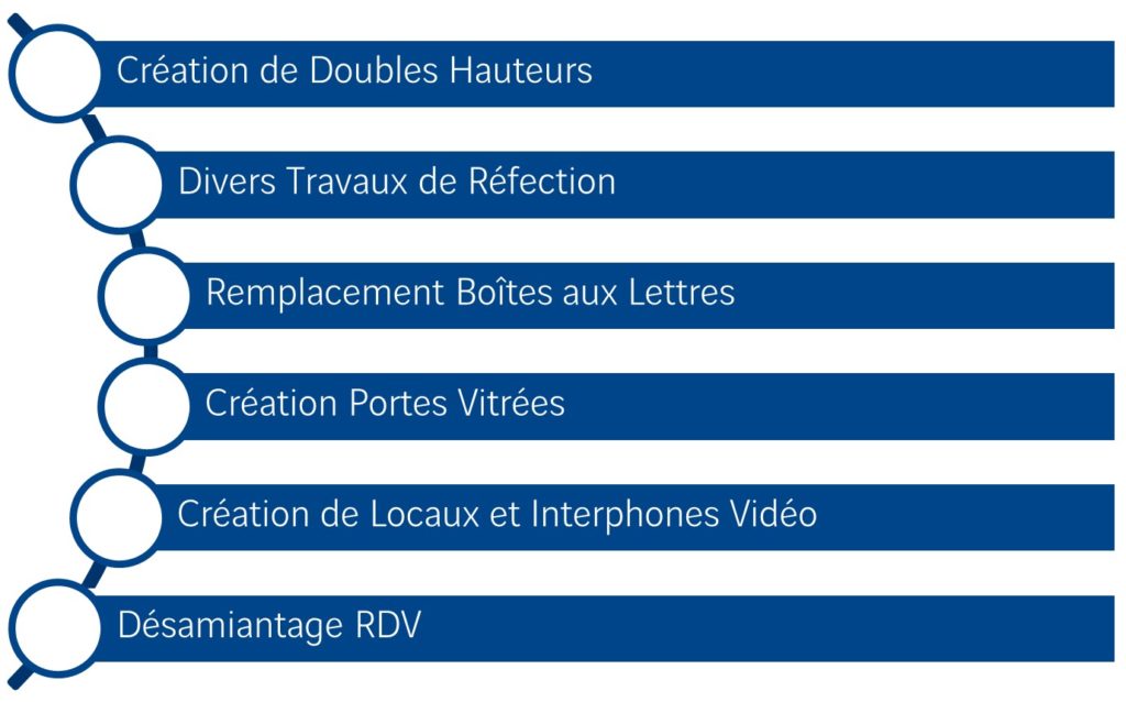 Les travaux LE PROGRAMME DES TRAVAUX EXTERIEURS L'enveloppe La tranformation des rez de chaussée LE PROGRAMME DES TRAVAUX PARTIES COMMUNES Les halls Les paliers LE PROGRAMME DES TRAVAUX LOGEMENTS